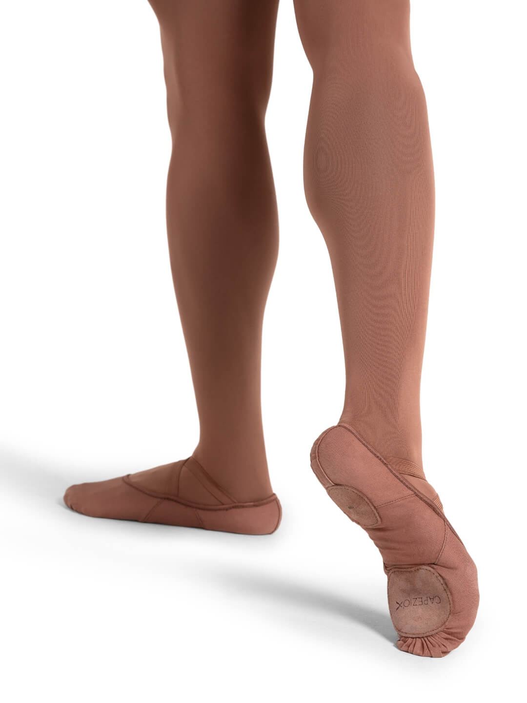 Glide freely across the studio floor in Hanami. This slip-on ballet shoe is made of high quality canvas material that stretches as if you're wearing nothing at all. The split-sole design eliminates bulk in the arch, provides maximum metatarsal protection, and allows the flattest platform to pivot on. What sets the Hanami apart from other ballet shoes is the patented technology that creates a seamless diamond gusset in the arch of the shoe. This means there is no harshly stitched line down the center that will interfere with how you point and flex. No drawstrings erase any worry of the ballet slipper coming undone. High caliber dancers swear by this slipper.