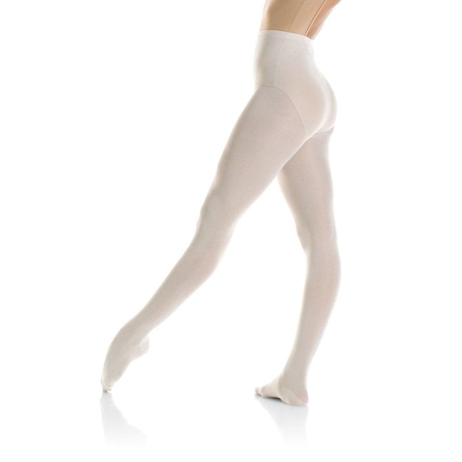 This MONDOR durable nylon footed tight, very resistant, is perfect for long practices. Comfortable with its reciprocated toe. Excellent for recital and costuming. Knitted waistband.