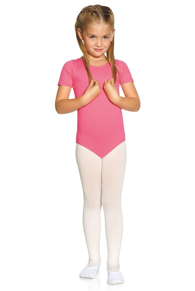 Simple, classic and comfortable! Our short sleeve leotard is made in a soft matte finish nylon. Lined front with wicking properties hugs your body, providing an exceptional fit. You'll love the clean n' graceful look for class, auditions, and more!