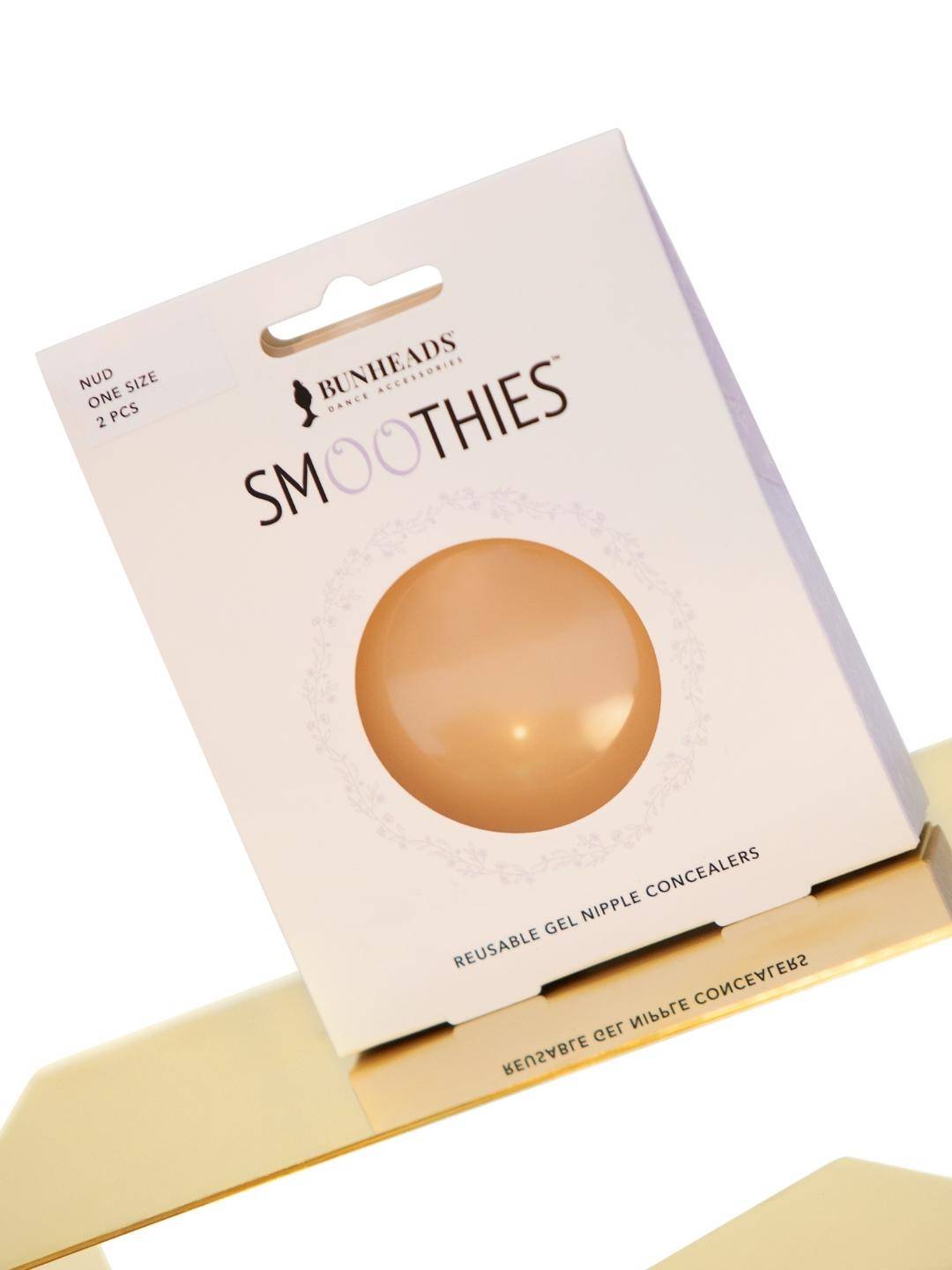 Create a seamless profile with Smoothies™ nipple concealers. Made of 100% gel, these washable and reusable concealers offer a smooth look under leotards, costumes, and everyday clothing. Includes a compact case for storage and travel. One pair of concealers per package, so you have everything you need to feel confident and comfortable in any outfit!
