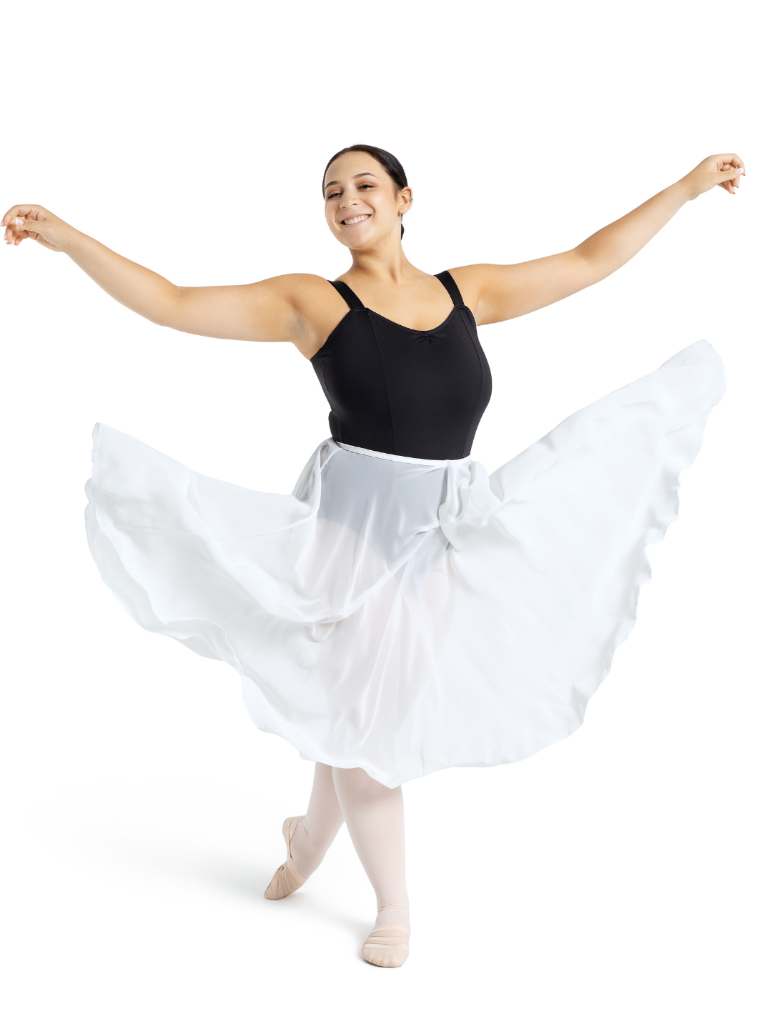 Add elegance and flow to the studio in the Mid-Calf Skirt. The waistband is made of our buttery-soft Tactel® fabric with an adjustable button to ensure a comfortable, customizable fit every time. The perfect wardrobe addition for teachers and lyrical and liturgical dancers. Pair with your favorite leotard to complete your look!