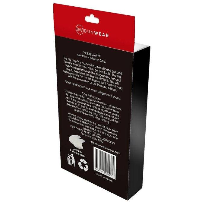 The Big Gap‚ is made with a firm silicone gel and is more durable than other gel products. It is used between the biggest and second toe, to help keep the big toe straight. This will lessen pressure put on the big toe joint and will help with the prevention of bunions and blisters.
